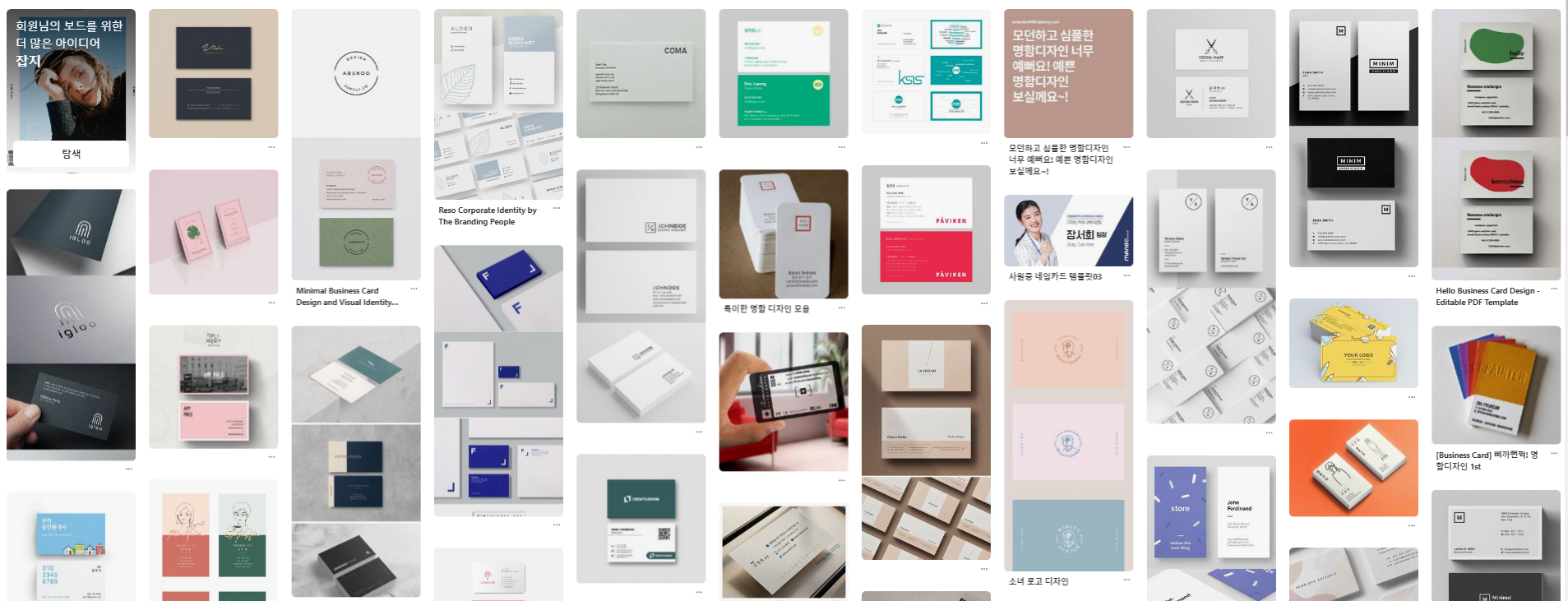 핀터레스트에서 명함디자인이라 검색만 해보시면 엄청 다양한 명함디자인이 나옵니다.