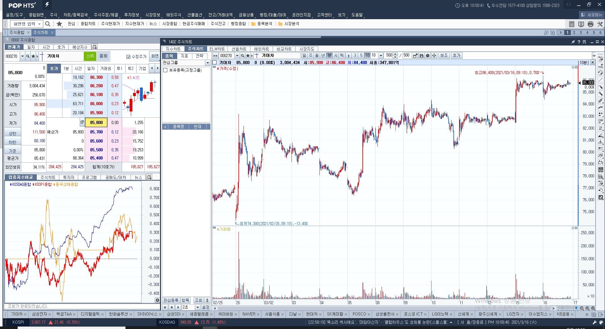 해당 HTS에서 각 주식종목을 볼 수 있고 차트를 보거나 매도,매수가 가능하며 호가도 볼 수있고 등...