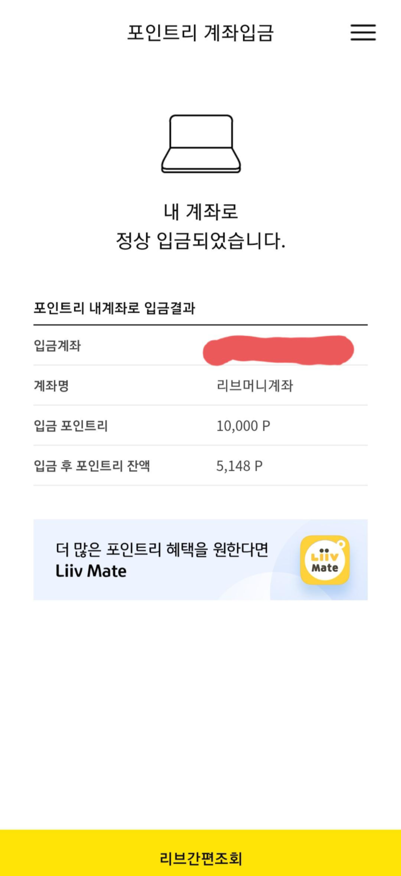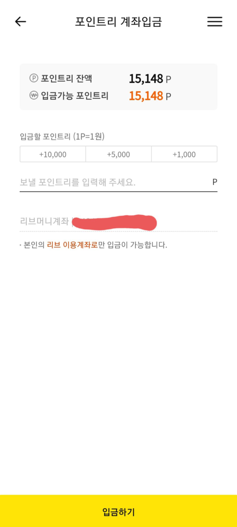 리브머니계좌만 입금이 가능하다고 나오는데, 그냥 국민은행계좌를 얘기하는거라 생각하면 될듯합니다.