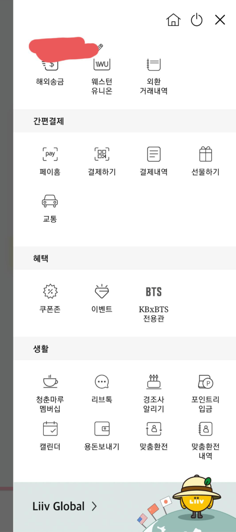 리브앱을 로그인해서 들어가시면, 오른쪽 상단에 가로줄 세개 누르면 다양한 메뉴가 나옵니다.